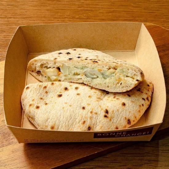 豆乳クリームソースのまろやかさに、ほんのり酸味のあるピタパンがよく合います。